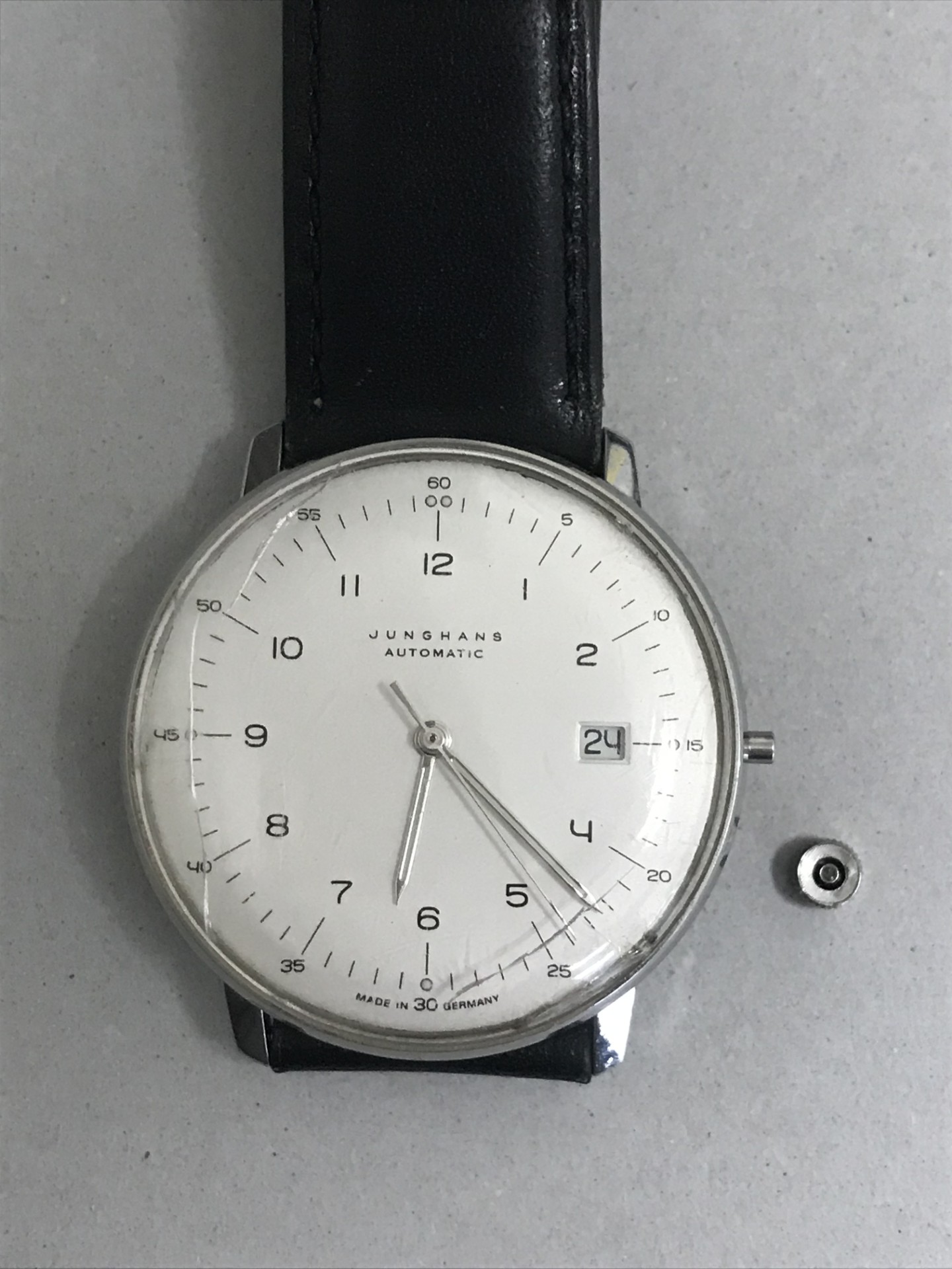 ?リューズが頭から折れてしまっています。軸はそのまま時計の中に残っていると思います。