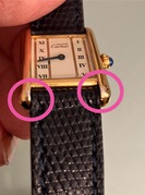 初めまして。ウェブサイトとみなさんのご依頼を拝見して、ぜひ修理をお願いしたくご連絡しました。 カルティエのマストタンクのクオーツですが、先日落としてしまった拍子に、風防のガラスが少し欠けてしまいました。表面右下です。少しガラスも浮いているようなので、修理をお願いできますか。取り替えたほうがいいかなと思っていますので、診断してください。 また、メッキは可能でしょうか。少し下の方がハゲてきている気がします。 ご回答どうぞよろしくお願いいたします。