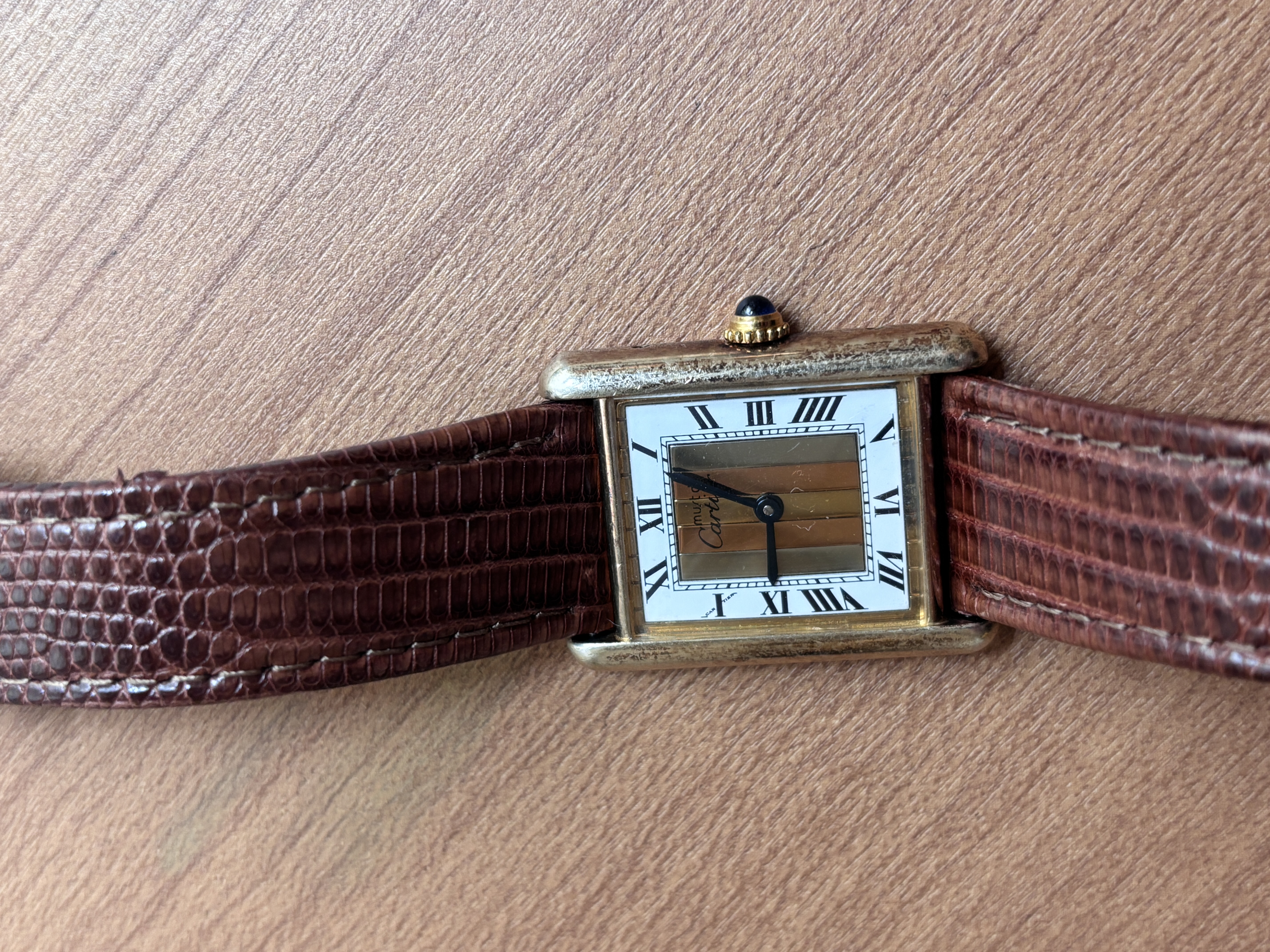 初めて修理にだすのでメニューが分かりませんが、時計の金枠の部分が汚くなってきました。これは金メッキの剥がれなのか、それとも汚れなのかよく分かりません。 どのようなメニューでどのくらいの値段がかかるでしょうか? また文字盤の6の下のところが黒ずんでいますが、部分掃除などで対応できるのでしょうか? よろしくお願いします。