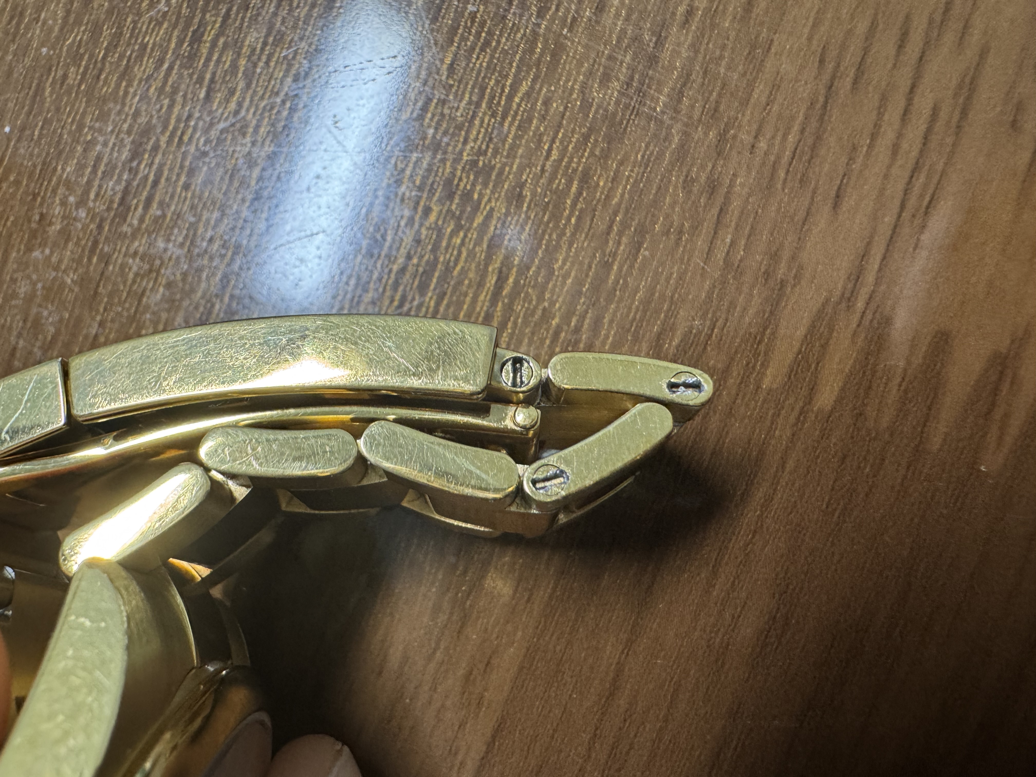 他店でねじ式のピンを取り外しコマを詰めた時金メッキがドライバーで削れたりして知って細かいガキになってしまう ベルトやケースの金メッキと同時に横のピンの部分などを研磨や再メッキしてもらえるのかとその費用を聞きたい