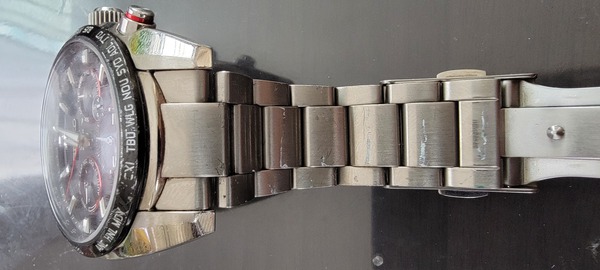 お写真を拝見しましたが、特にベゼルは刻印の上にかなり深いキズが多く見られ、
