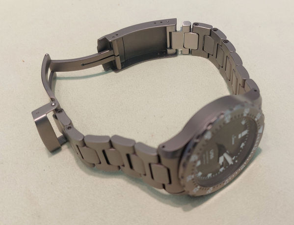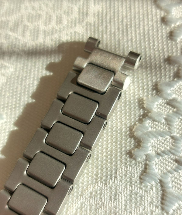 おそらく、こちらのお時計、ケース&ブレスレットの素材はチタンですね。