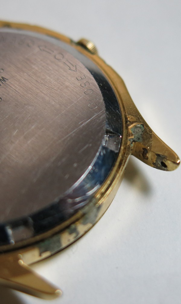 状態は、真上から見ればそれ相応の綺麗さですが、ベルトの触れるあたりは激しくメッキが剥がれており、あと竜頭とその周りも少し剥がれております。また裏面には何カ所かサビなのかメッキ剥がれなのかわからない箇所が数カ所あります。こんな状態でも再メッキは可能でしょうか?